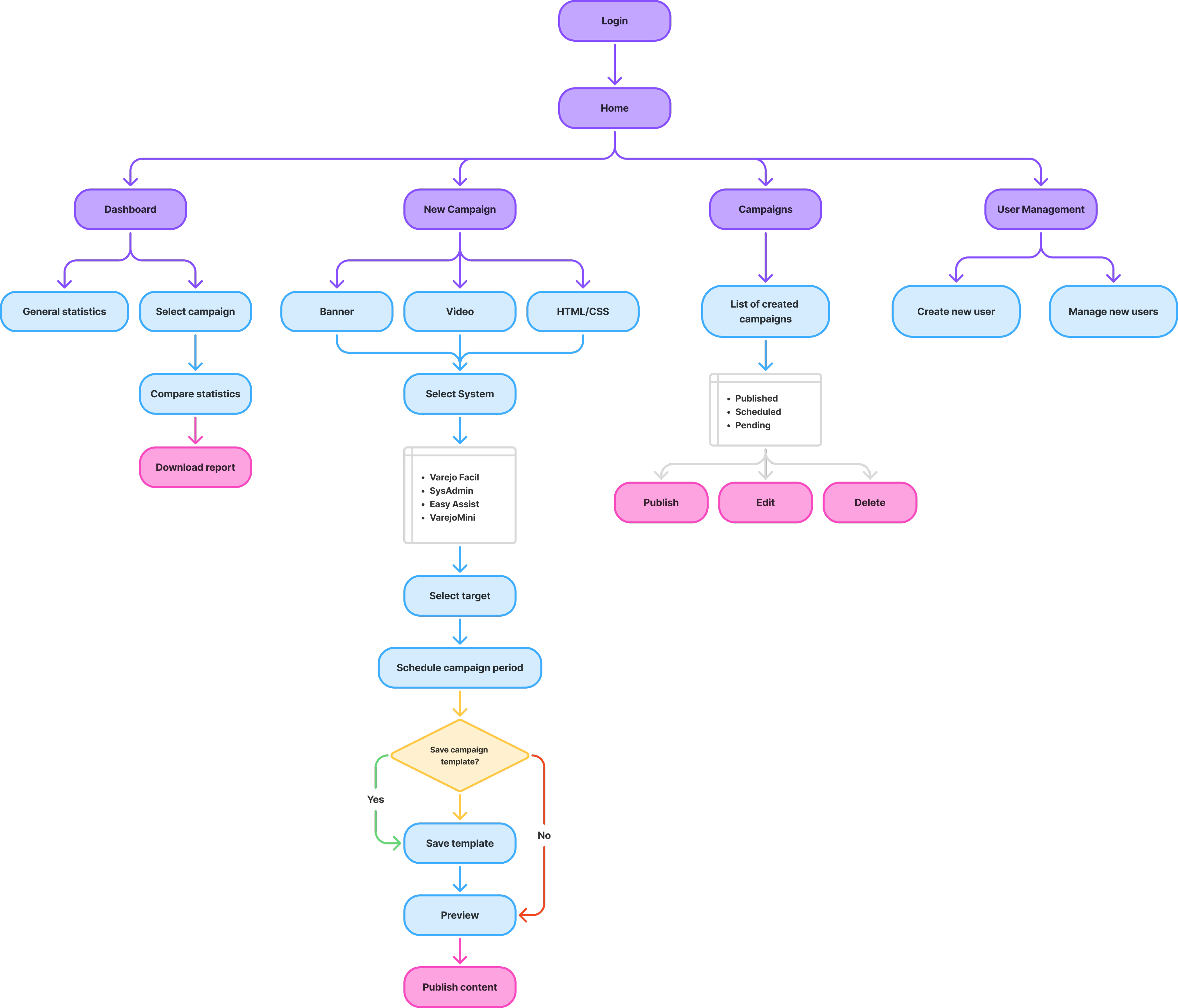 Development of an MVP for an internal system to manage and distribute communication campaigns for Casa Magalhães' clients. The marketing team previously relied on external tools to communicate with users of the company's products, but this product was specifically designed to meet their needs.